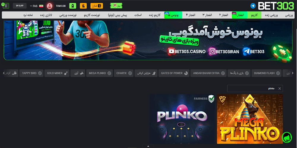 مزایای انتخاب سایت بت303 برای بازی پلینکو