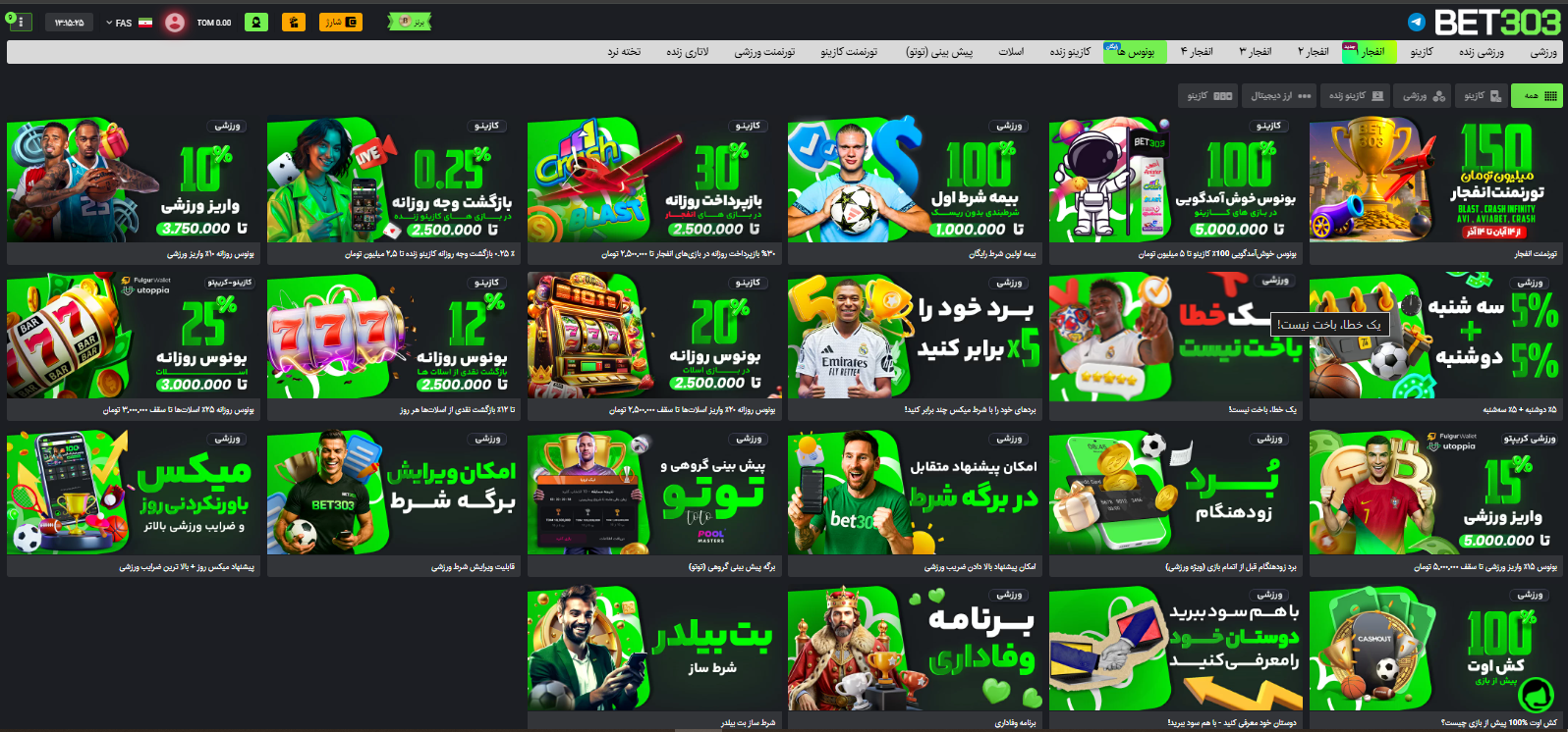 - بونوس های مخصوص بازی: بت303 بونوس های ویژه ای برای بازی های خاص از جمله بازی پلینکو ارائه می دهد تا کاربران بیشتر از همیشه برنده شوند.